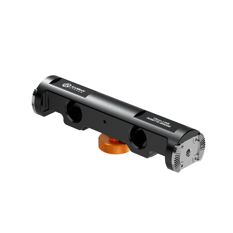 The 15mm LWS Rosette Bridge is compatible with 15mm support rods, set at the 15mm LWS standard width, and can be mounted anywhere along the length of the rods. The Rosette Bridge can be combined with any accessories that use ARRI-standard rosettes: such as KASBAH Hand Grips.