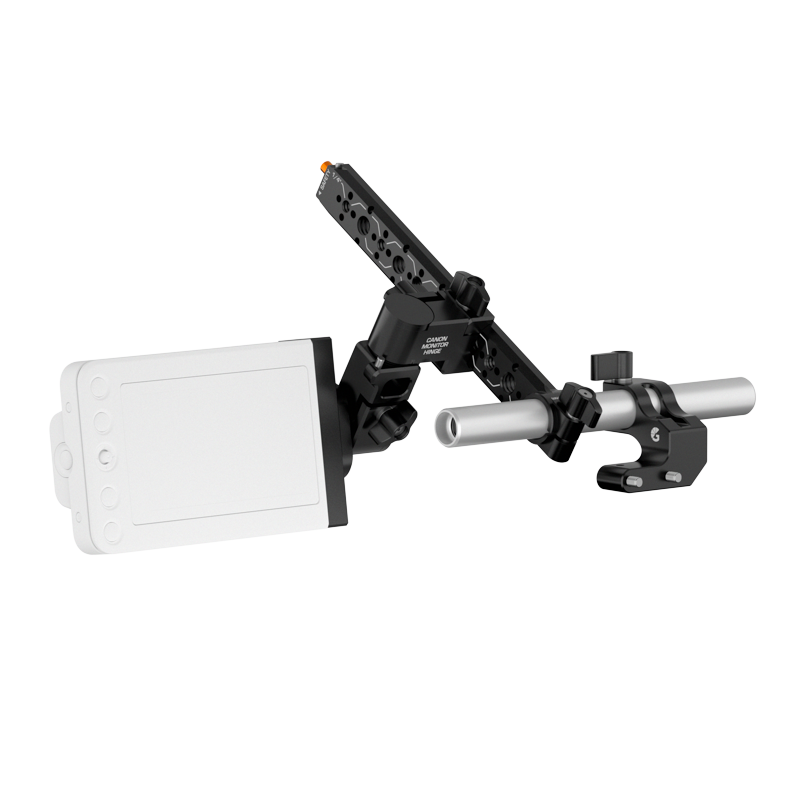 The Canon C400 Monitor Mount Kit is designed for the Canon C400 LCD Monitor, with the dedicated NATO Monitor Hinge being shaped to the stock C400 monitor. However, all components use industry-standard mounting points for extended compatibility, allowing for modular use in other setups.
