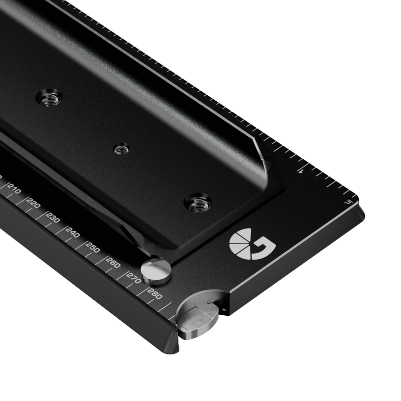 The dovetail features both front & rear push-button safety releases. With accessories like lens motors that hang below the level of the baseplate, an easy backward slide provides an easy way to slide off your dovetail without disruption.