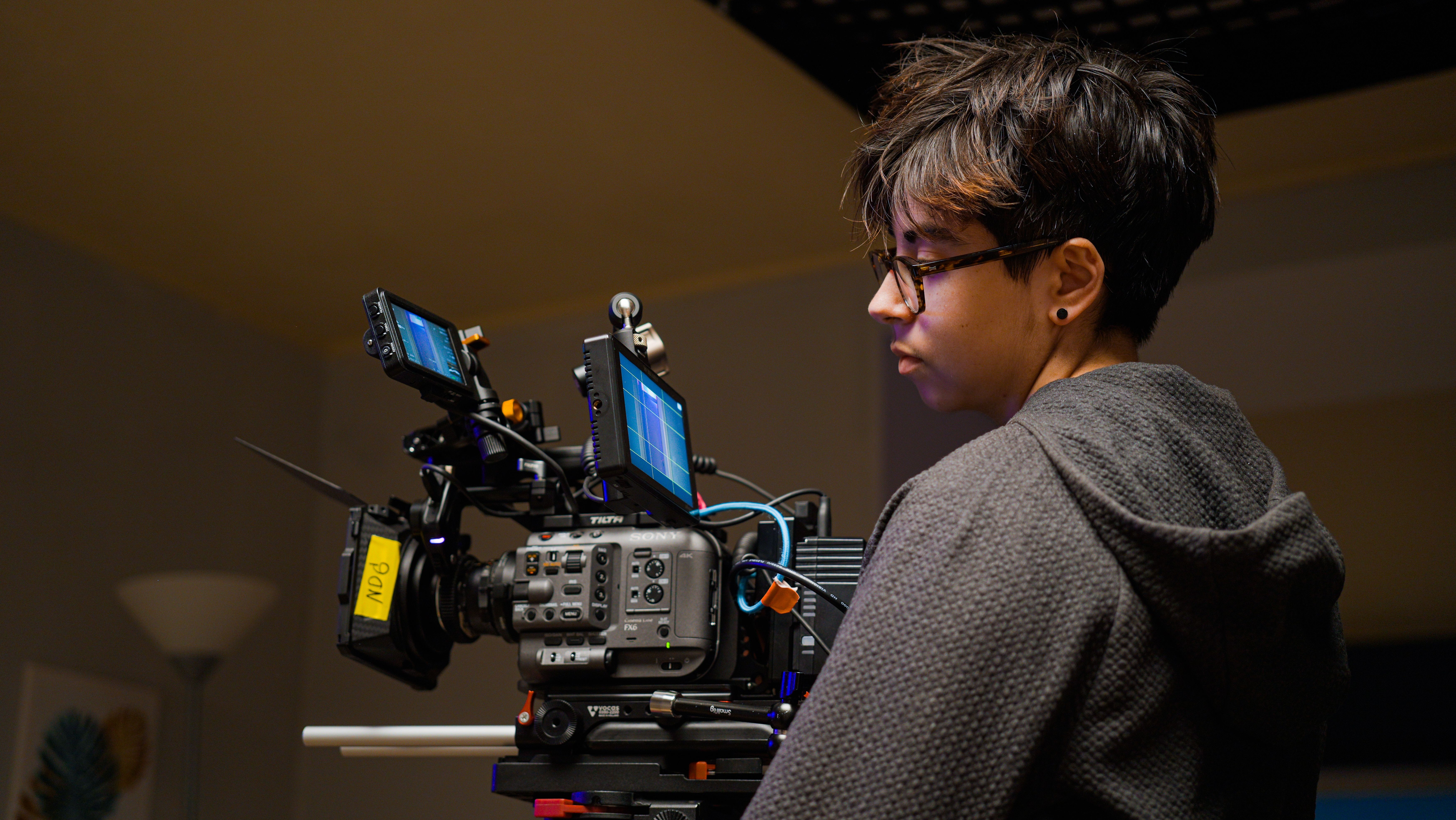 The monitor holder is custom matched to the FX6 monitor, with a 3/8” thread for attaching to the included 15mm rod mount or other accessories, and the included cable hook prevents snags.