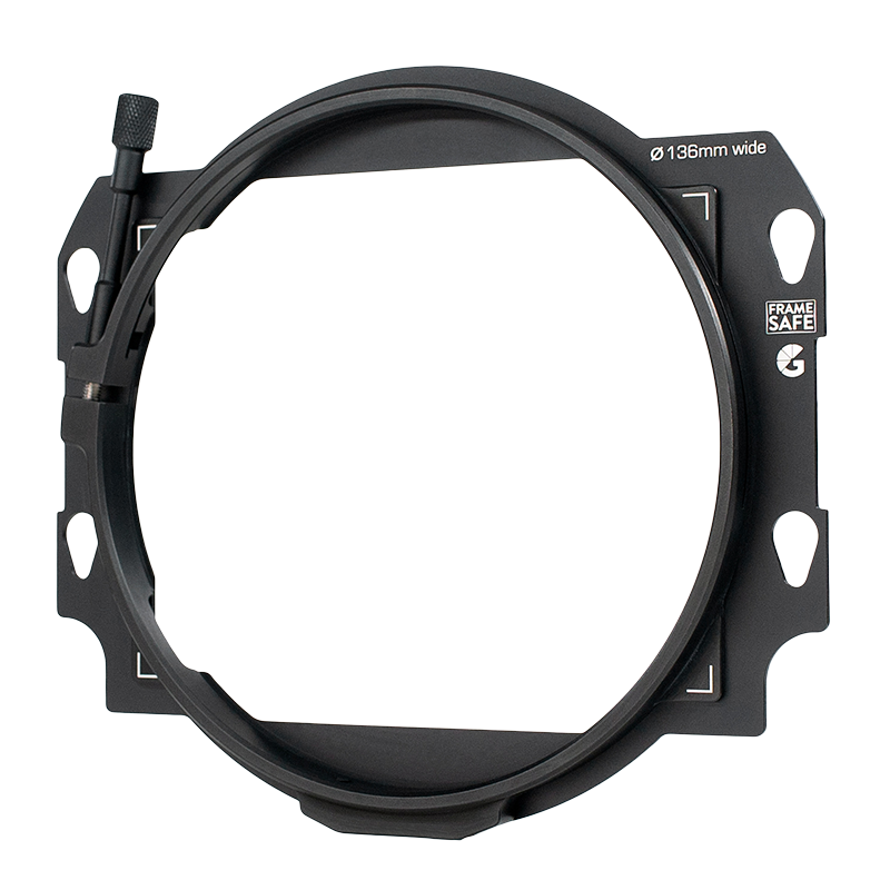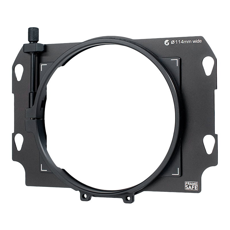 It features our new Frame Safe design that not only has the standard circular cut out but an additional rectangular aperture to maximise the field of view to prevent vignetting, even when using wide lenses with large format sensors without having to use a 6×6″ matte box.