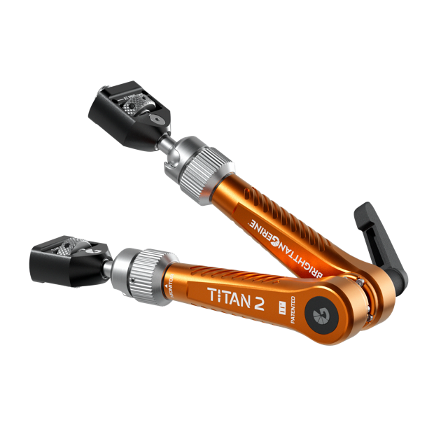 This Titan Arm 2 kit features a 3/8”-16 thumbscrew at the camera end, and a 1/4″-20 thumbscrew at the monitor end – the industry standards for mounting. The thumbscrew design removes tools from the equation, meaning that you can attach and detach accessories or the Titan Arm itself in moments.